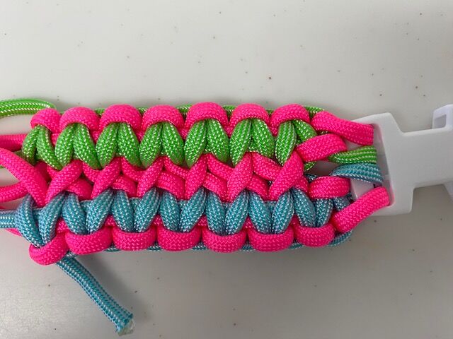 ママは大型犬用の幅広首輪の見本を編みました。