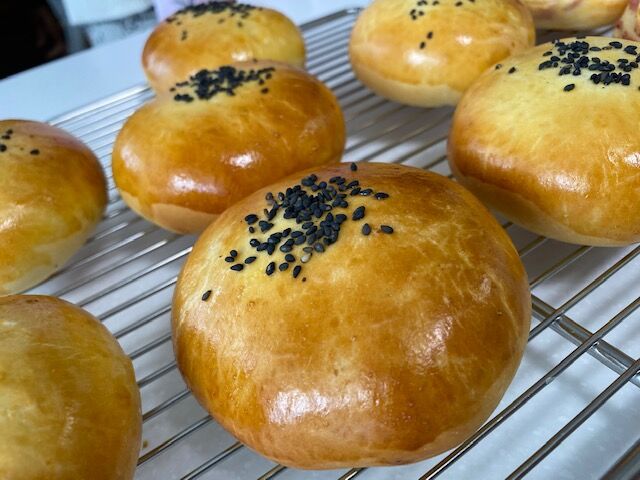 焼き立て熱々のあんぱんを試食できるのは焼いた人の特権ですね。