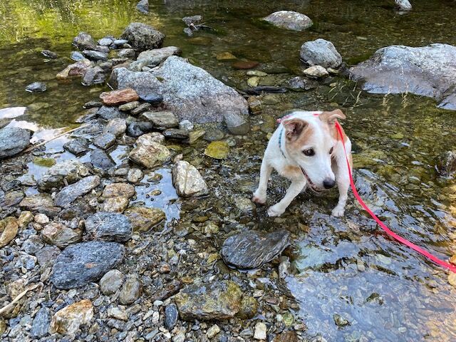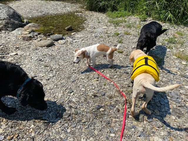 チェックイン前に川遊び。