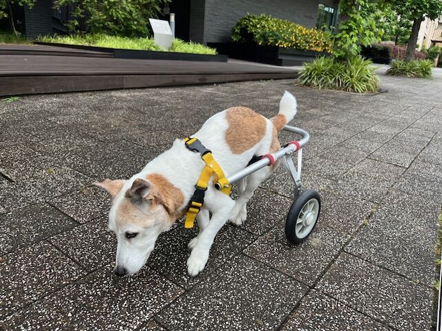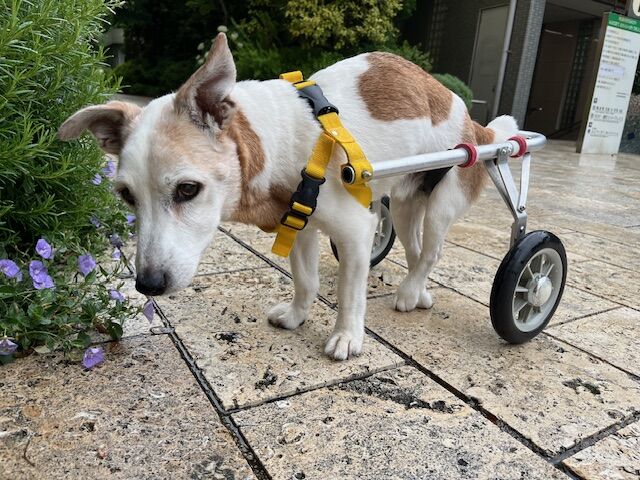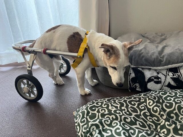 お家で車椅子に乗せてたら、ベッドの上まで上がろうとしてました。