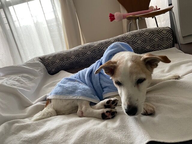 留守番中💩が出たらしく、お尻や足が汚れていました。