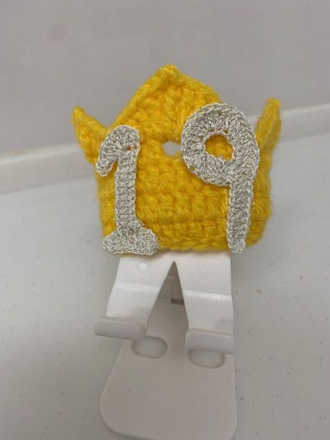 もうすぐ19歳になる凪くんへ帽子に1と9の数字を編んで付けました。