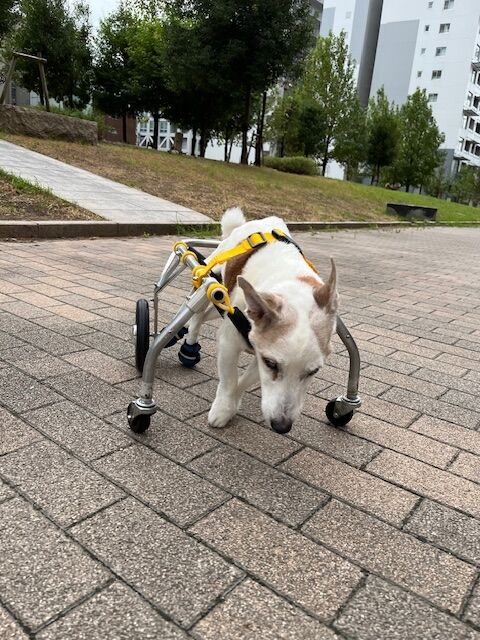 歩き始めるまでに時間がかかりますが、一生懸命歩こうとしています。