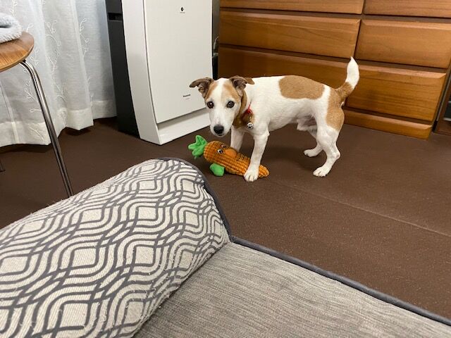 寝て起きてはレトリーブ、また寝て起きてはレトリーブと家の中ではよく走っています。