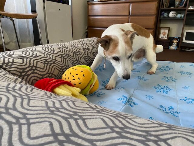 朝は7時頃起きてきました。